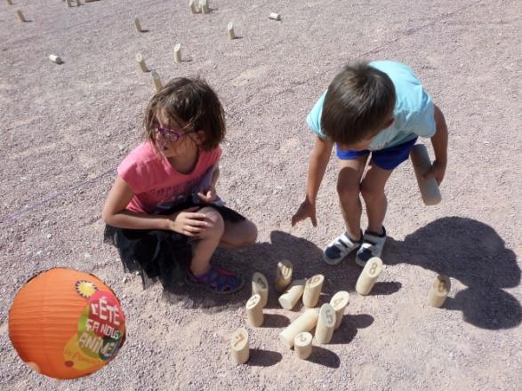 A propos du jeu, les enfants se sont exprimés ... "on ne connaissait pas ce jeu avant de venir, mais on peut y jouer partout. Cali et Rihanna, qui connaissaient le jeu ont expliqué aux autres : on a parlé aux autres et on a montré. Dans ce jeu on doit "dégommer des quilles avec un bâton, par équipe de deux. C'était difficiel de faire comprendre le trou ; c'est quand on ne fait pas tomber de quilles, au bout de trois fois, on est éliminé !. Il faut savoir compte jusqu'à 50 et si on dépasse 50, l'équipe redescend à 25."