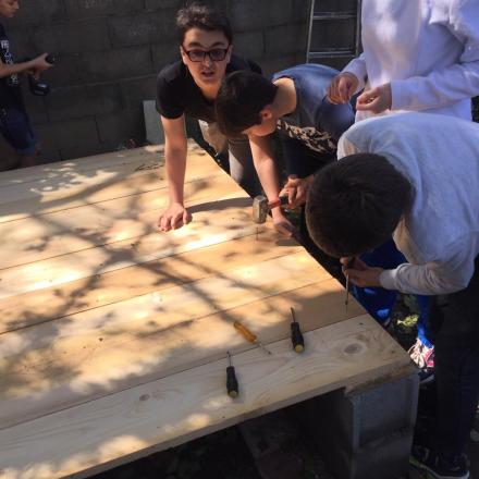 Dans le cadre d'une passerelle entre les centres de loisirs et l'espace jeunes de la Communauté de Communes Leins Gardonnenque, les enfants et les adolescents dont construit un poulailler partagé. De Janvier à Juin, sur plusieurs mercredis, les jeunes, accompagnés d'animateurs, ont confectionné le projet de A à Z. Du choix des plans jusqu'à sa fabrication, les jeunes ont pu s'apercevoir du travail que represente une telle construction. Riche en échanges, cette coopération est une vraie reussite. Un projet durable qui a permis aux enfants des deux structures de se rencontrer regulièrement et de créer des liens, se qui favorisera sans doute le passage des "grands" des centres de loisirs à l'espace jeunes.