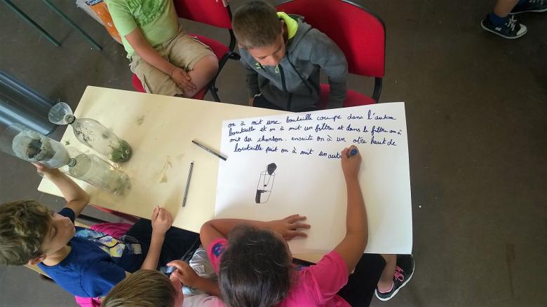 Les connaissances de nos Castors se forgent aussi dans la réalisation d’une station de filtration, à ne pas confondre avec la station d’épuration ! Ils ont commencé par récupérer de l’eau salie, et ensuite ils ont testé du charbon, des filtres à café, du sable ou plein d’autres outils pour rendre l’eau propre : c’est compliqué, et il faut plusieurs types de filtres pour nettoyer l’eau, tellement indispensable pour notre usage quotidien !