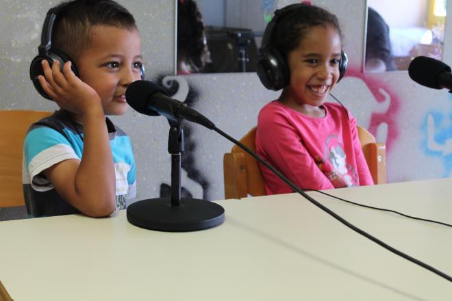 Par groupes de 4 enfants de 3 à 16 ans, ils ont chacun leur tour découvert l’univers de la radiophonie. Ces ateliers avaient pour objectif de favoriser l’expression des jeunes et les initier à l’animation radio. Ils ont également eu l’occasion de chanter sur leurs chansons préférées avec J-P aux platines ! A la suite d’une présentation individuelle de chaque enfant, ils ont trouvé un nom à leur émission radio, accompagnés d’un jingle personnalisé pour chacun des groupes.