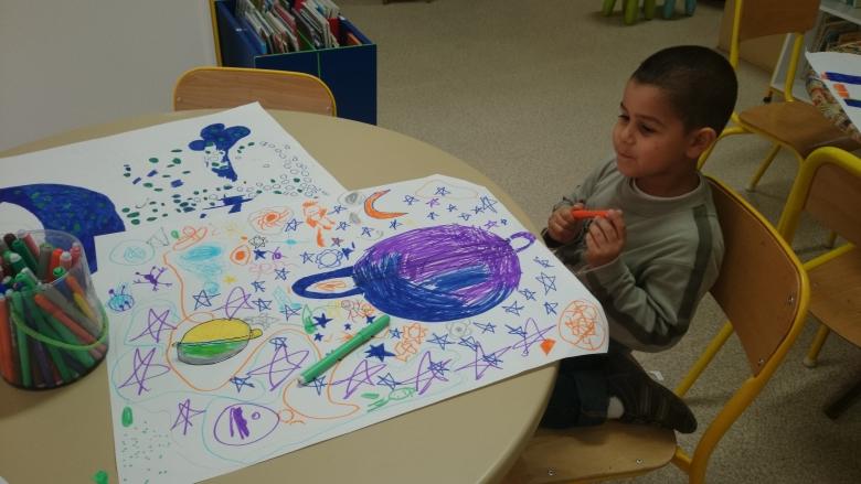 Lors de mes échanges avec les enfants, je me suis rendue compte qu'ils se souvenaient très bien de ce que nous avions fait ensemble l'année précédente sur le système solaire. La formation « Petite ourse » m'a permis d'alimenter leurs réflexions, remarques et les contenus des ateliers. J'ai également organisé une séance d'initiation à l'utilisation des jumelles.